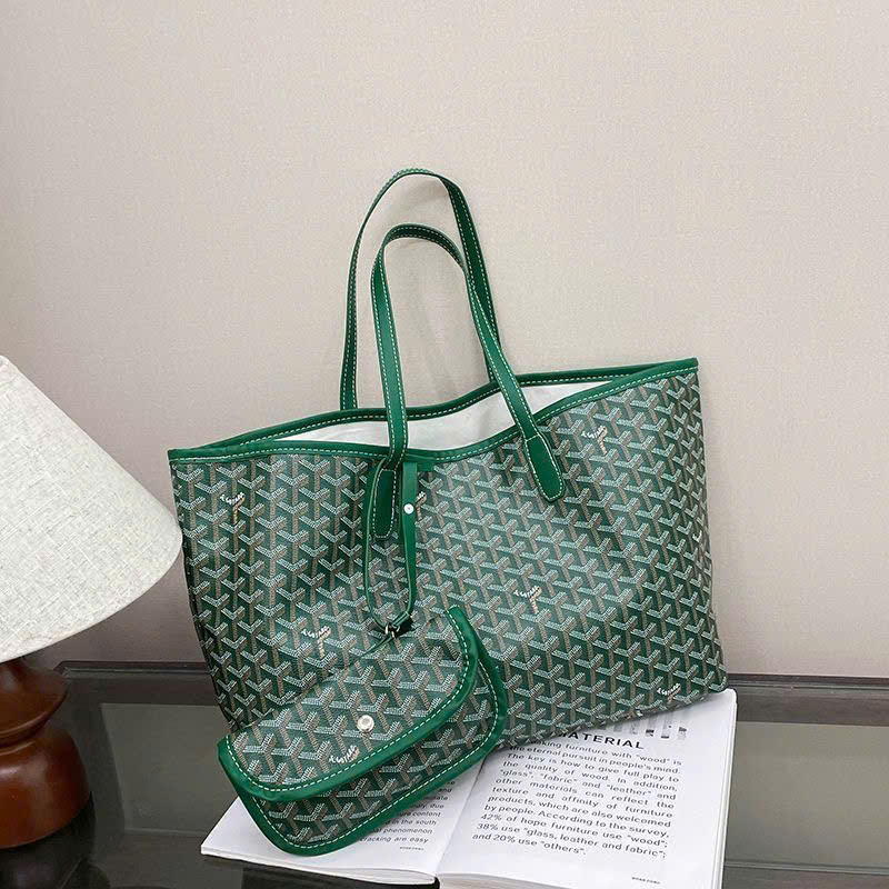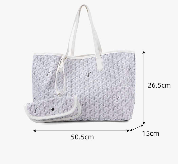 This signature tote bag features a classic geometric pattern with a spacious open-top design, crafted from durable coated canvas and trimmed with smooth leather edges. Lightweight yet sturdy, it comes with a matching detachable pouch, making it perfect for daily use, work, travel, or shopping.