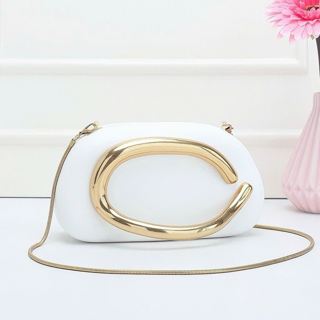A signature detail of this design is its golden metallic shoulder strap, crafted from durable polished metal links. The strap adds a luxurious touch while providing comfortable wear, allowing the bag to be styled as a shoulder bag or crossbody depending on your look.