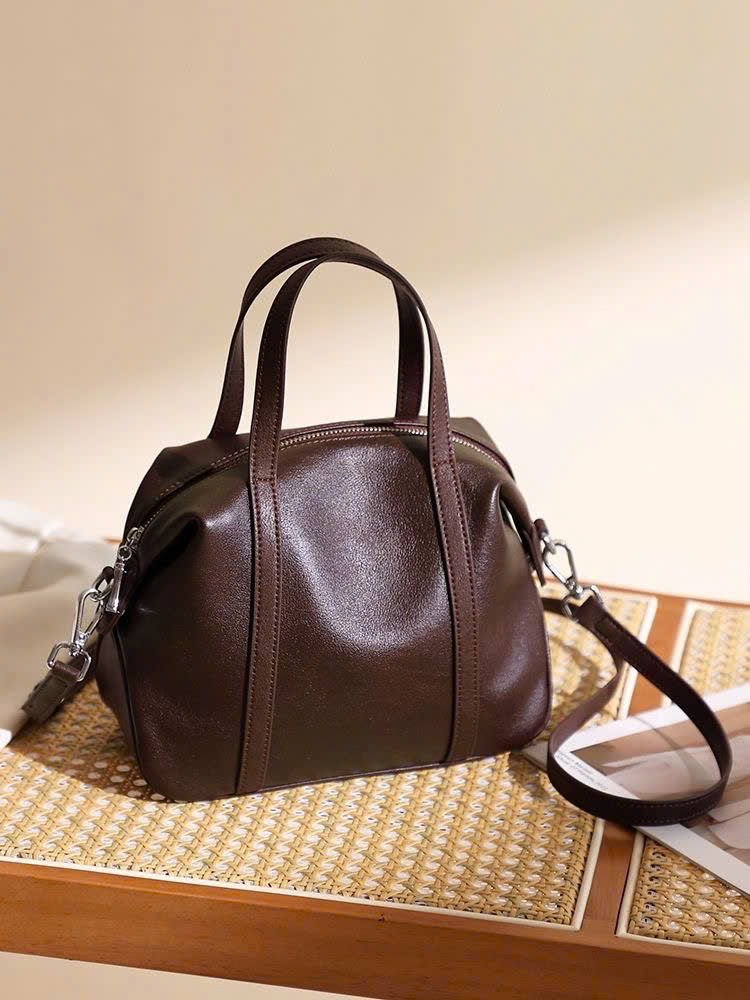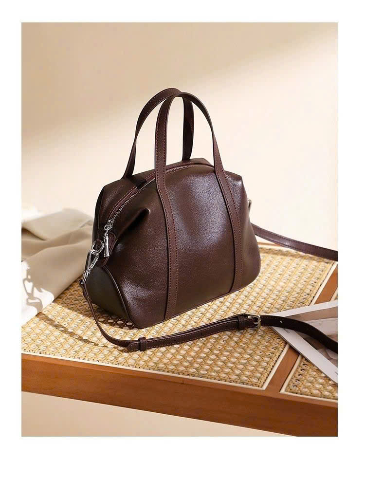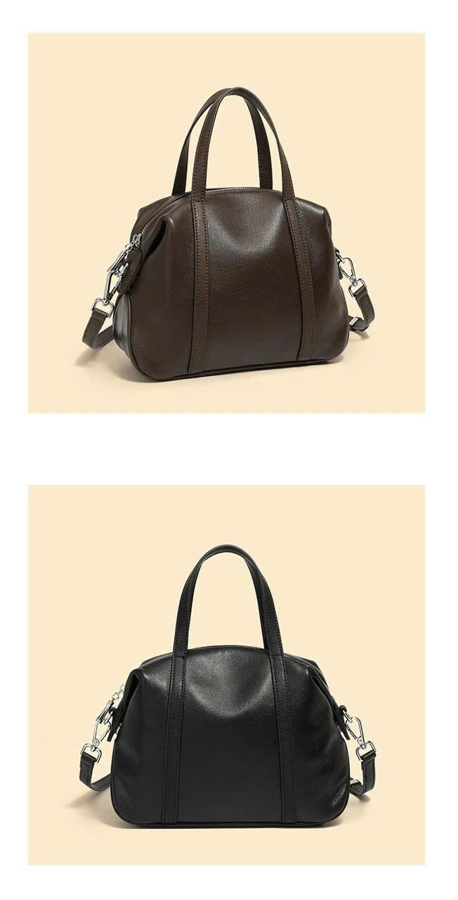 FREESHIPPING - This elegant cowhide handbag is designed with a soft, rounded silhouette that feels both modern and timeless. Made from high-quality first-layer cowhide, it offers a smooth texture, natural durability, and a refined look that elevates any outfit. With a spacious interior lined with fabric, along with a cell-phone pocket and a secure zipper pocket, the bag keeps your essentials organized throughout the day.