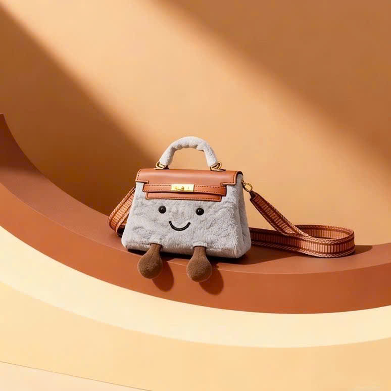 The Happy Teddy Mini Top-Handle Bag features an adorable plush teddy-style design with a cheerful embroidered smile and cute dangling legs. Crafted with a soft faux-fur body and a structured top handle, this mini bag blends playful charm with fashion appeal. It comes with a detachable shoulder strap, allowing it to be carried by hand, worn crossbody, or styled as a statement accessory. Available in multiple sweet and neutral colors, it’s the perfect bag to brighten up casual outfits and cozy looks.