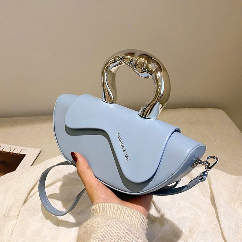 Crafted from smooth, high-quality faux leather, the bag includes a secure flap closure and a spacious interior perfect for essentials such as a phone, wallet, keys, and cosmetics. The detachable shoulder strap allows it to be worn as a crossbody or shoulder bag, while the sculptural handle makes it striking when carried by hand.