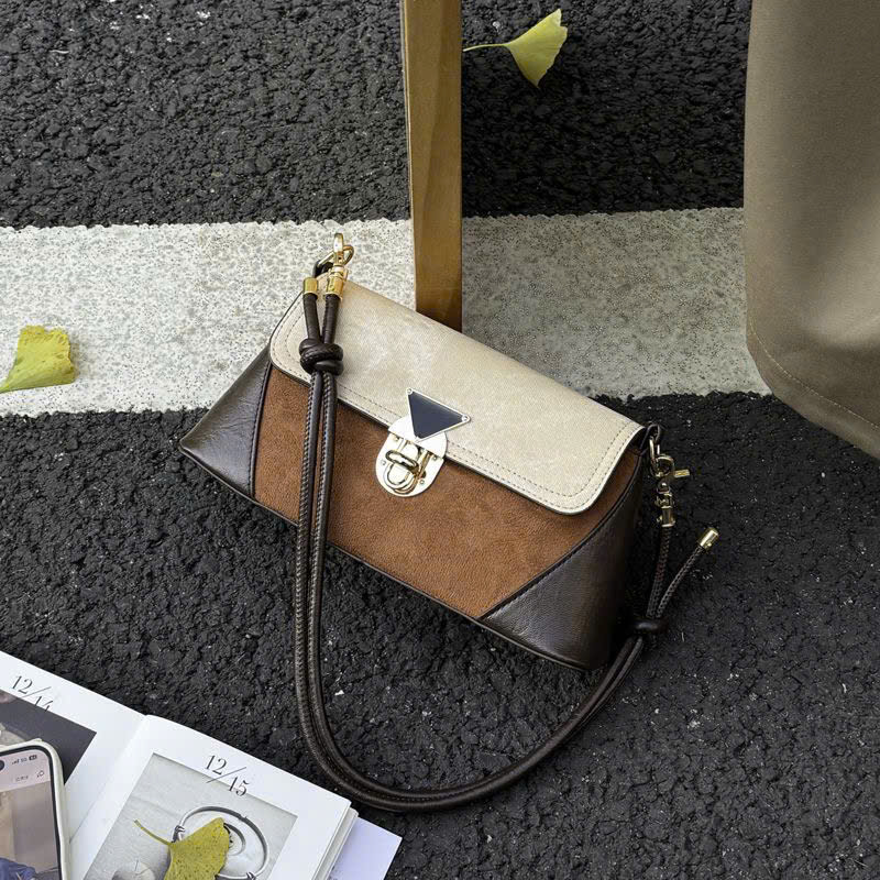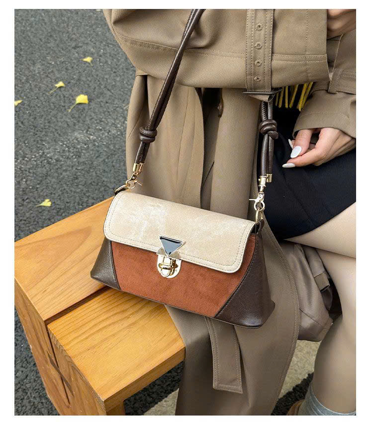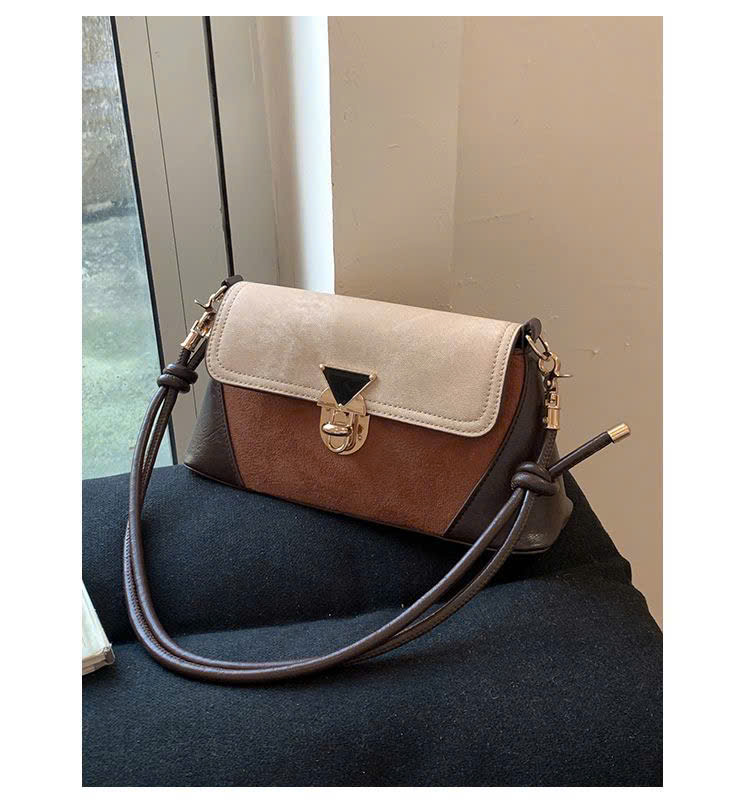 FREESHIPPNG - This handbag features a sophisticated color-block design combining cream, warm brown, and deep chocolate tones, creating a visually elegant and modern look. The flap is crafted from a soft, suede-like material, adding texture and depth, while the body of the bag uses smooth leather for structure and durability.