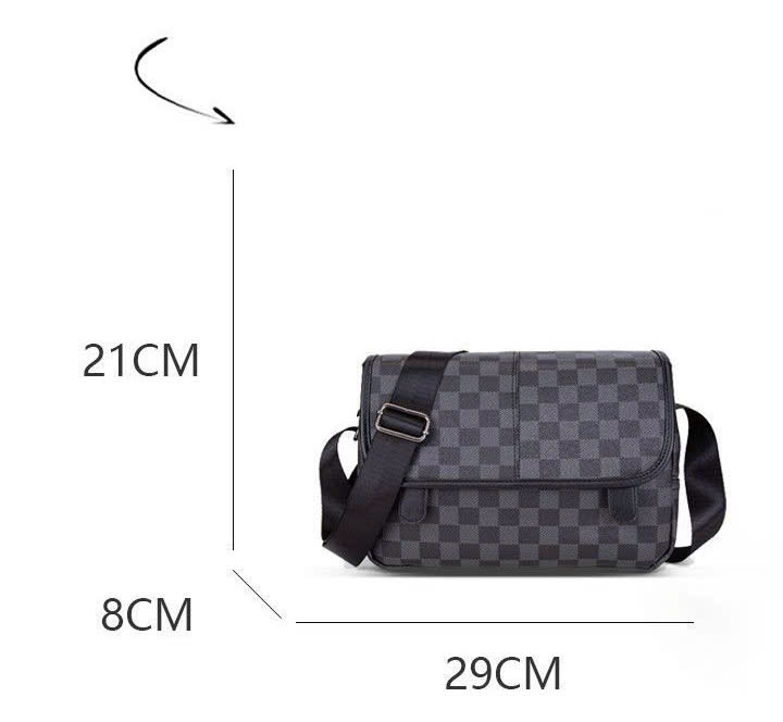 This men’s crossbody bag features a timeless checkered pattern with a sleek, modern silhouette. Crafted from durable coated canvas with a smooth fabric lining, it is lightweight, wear-resistant, and easy to maintain.